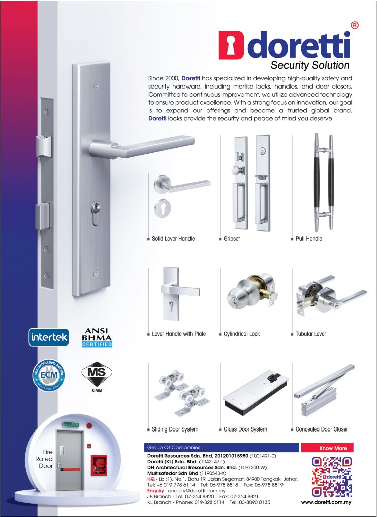 Doretti has been devoted to the research and development of architectural hardware since its modest beginning in 2000, speciallizing in security ironmongeries designed for commercial, industrial, and residential markets including mortise locks, handlesets, door closers, security key systems, hinges and different constructive hardware.